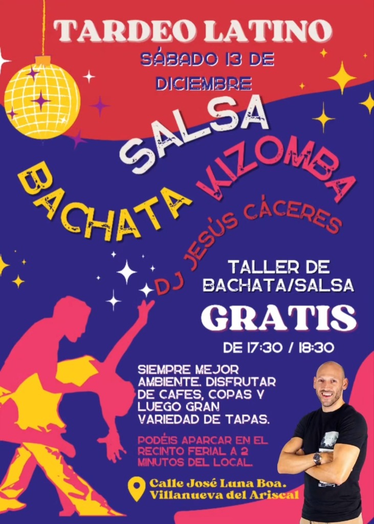 🎵 The party will feature the incredible DJ JESÚS CÁCERES, who will take you on a musical journey through the most exciting genres: Salsa, Bachata, and Kizomba. There’s no better way to learn and enjoy at the same time! Plus, you'll have the chance to participate in a workshop that will make you shake your hips like never before. You can't miss it! 🎶