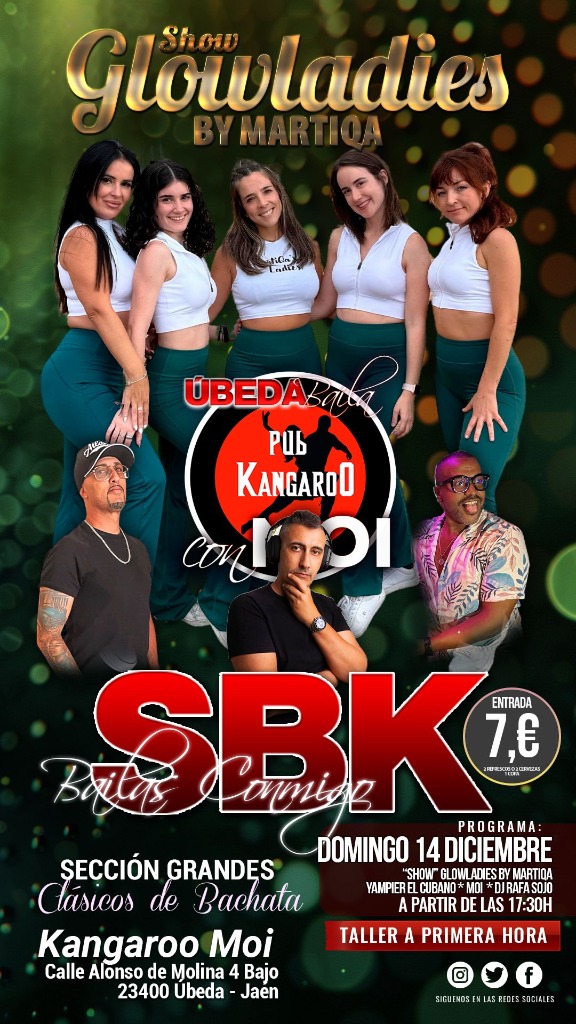 🎉 Get ready for a magical night full of rhythm and energy at the Show Glowladies by MartiqA! 💃 This vibrant event will take place at the Kangaroo Moi, a place where the passion for bachata is felt in every corner. 🌟 Come and immerse yourself in a festive atmosphere, where every dance step will transport you to a world of joy and connection.
