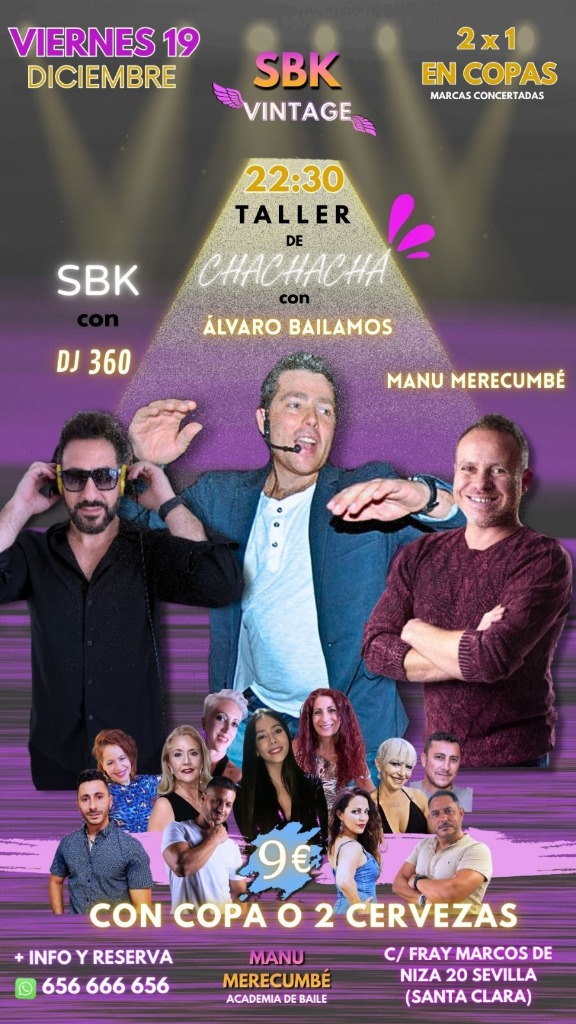Don't miss this unique opportunity to dance and socialize with other Latin music lovers. With a price of 9€ that includes a drink or 2 beers, it's a plan you can't pass up! For more information, contact us at 📞 +34 656 666 656 and come experience a night full of rhythm and fun! 🎭