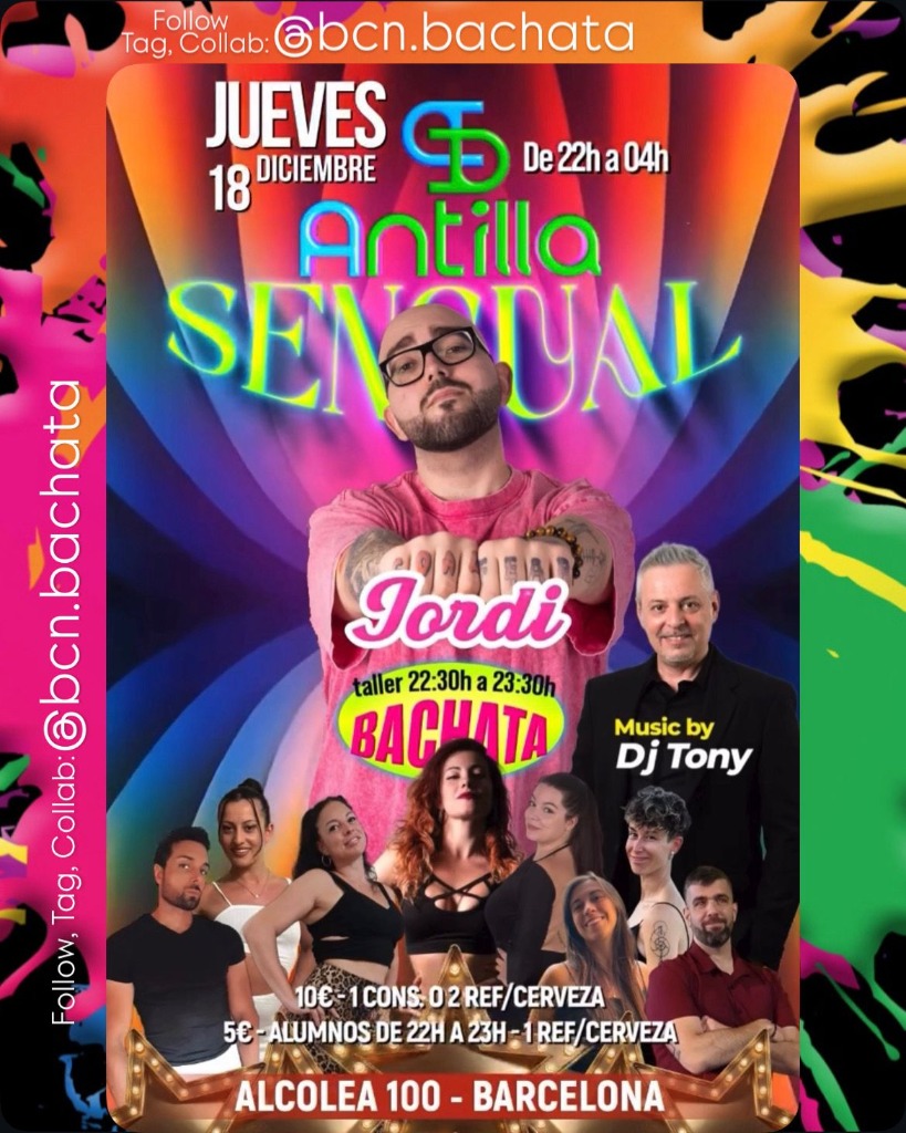 🎉 Get ready for an unforgettable night at Antilla SENSUAL at Alcolea 100! 💃 This event is an explosion of energy and rhythm, where bachata becomes the universal language that unites hearts and bodies on the dance floor. 🌟 Come enjoy a vibrant and welcoming atmosphere, where every step is a celebration of life and the passion for dance.