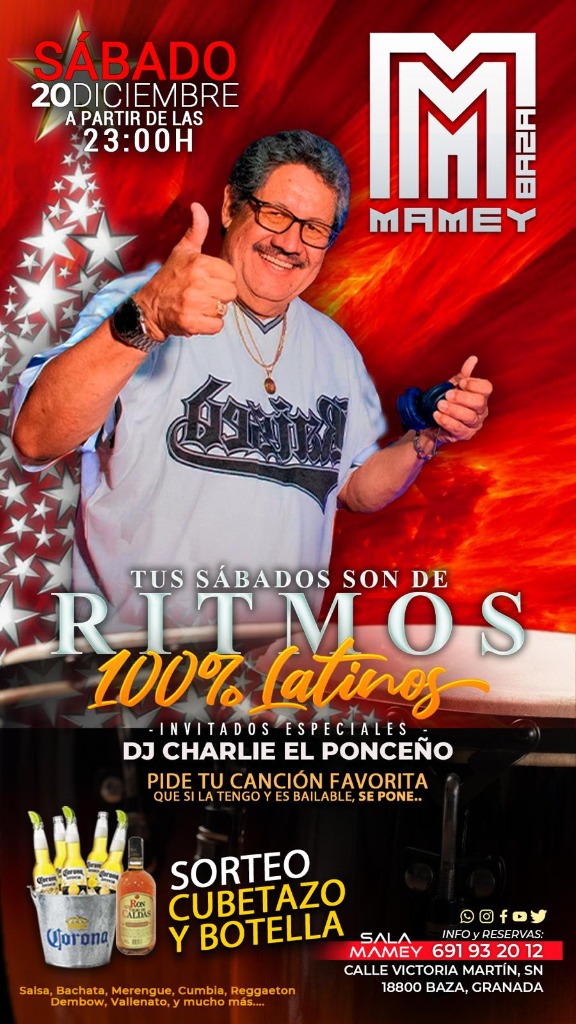 🎵 The party will feature the incredible DJ Charlie El Ponceño, who will take you on a musical journey through the most popular genres: Salsa, Bachata, Merengue, Cumbia, Reggaeton, Dembow, and Vallenato. Plus, don’t miss the exciting bucket and bottle raffle we’ve prepared for you! 🎪