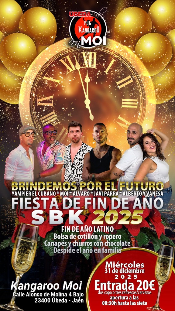🎉 Celebrate New Year's Eve with us at the SBK 2025 New Year's Party at Kangaroo Moi! This vibrant and energetic event will transport you to a world of Latin rhythms where salsa, bachata, and kizomba intertwine in a magical night. 💃 Come enjoy a festive atmosphere, surrounded by friends and great music, as we bid farewell to the year with joy and passion. 🌟