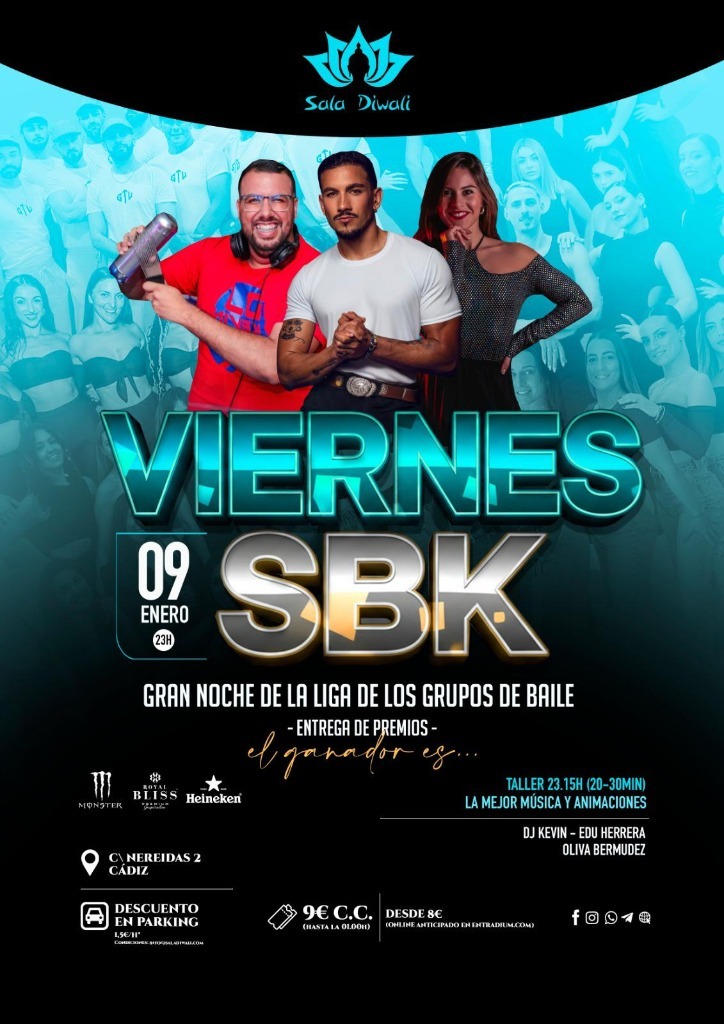 🎉 Get ready for a magical night at VIERNES SBK in the amazing Sala Diwali! 🌟 The vibrant energy of salsa, bachata, and kizomba will envelop you from the very first moment. Come enjoy a festive atmosphere where music and dance blend to create an unforgettable experience. 💃