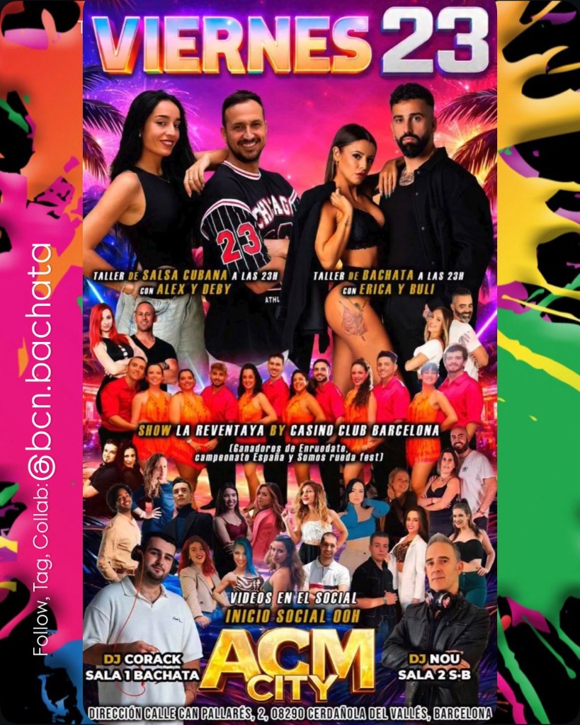 🎉 Get ready for a magical night at ACM CITY in the iconic Casino Club Barcelona! 🌟 This event is more than just a workshop; it's a vibrant celebration of Latin culture where salsa and bachata intertwine in an atmosphere full of energy. Come enjoy a unique experience that will make you dance until you can't anymore. 💃