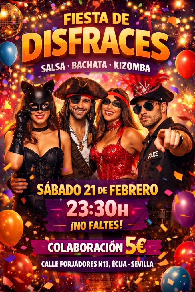 Sábado 21 de febrero tenemos fiesta de disfraces en la escuela!!! Disfruta de la salsa, la bachata y la Kizomba disfrazado de tu tema preferido!