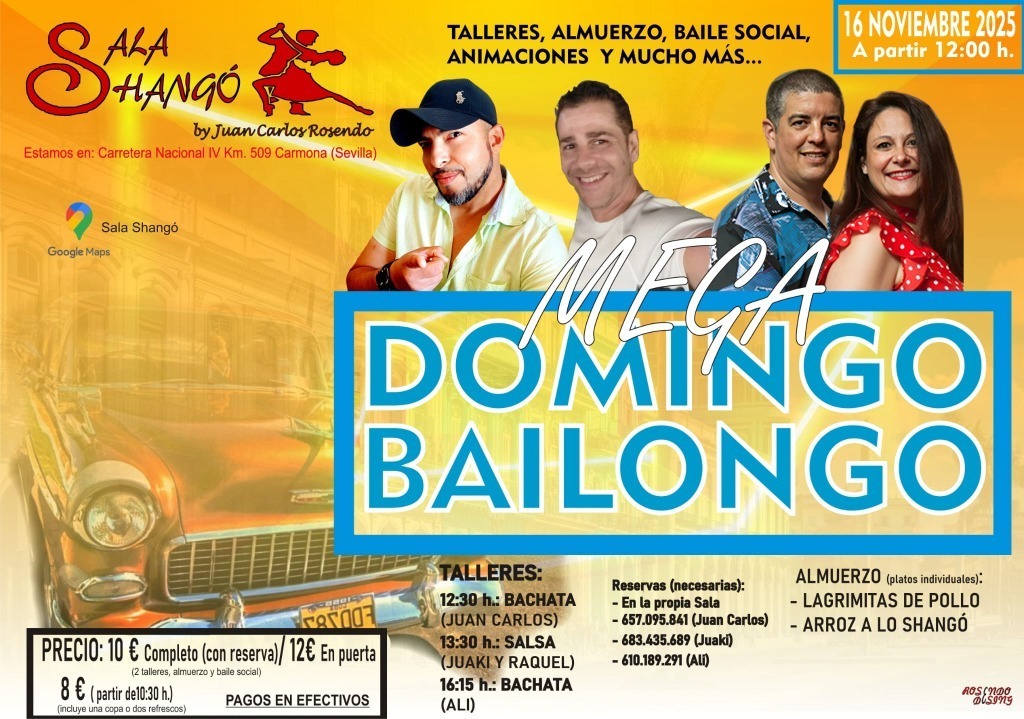 🎉 Get ready for an unforgettable experience at the MEGA DOMINGO BAILONGO! 💃 This vibrant event will take place at Sala Shangó, where the energy of dance and music merge to create a magical atmosphere. 🎶 Come enjoy a day full of rhythm and passion, surrounded by friends and dance lovers. You can't miss it! 🌟