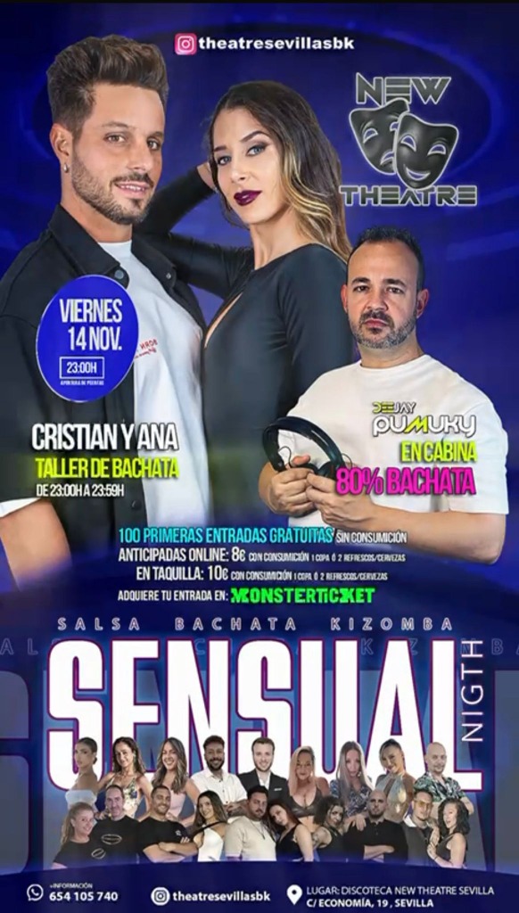 🎉 Get ready for an unforgettable night at SENSUAL NIGHT! 💃 Immerse yourself in the vibrant rhythm of salsa, bachata, and kizomba at the New Theatre Club. This event promises to be an explosion of energy and passion, where the dance floor will become your second home. 🌟