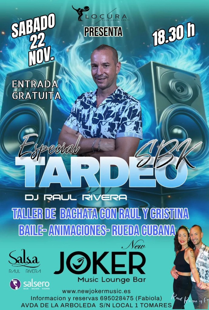 🎉 Get ready for a unique experience at the Especial Tardeo SBK! 💃 This vibrant event will take place at the New Joker Music Lounge Bar, where the energy of salsa, bachata, and kizomba will envelop you in a festive and welcoming atmosphere. 🌟 Come enjoy an afternoon full of rhythm and fun, perfect for dancing and socializing with friends.