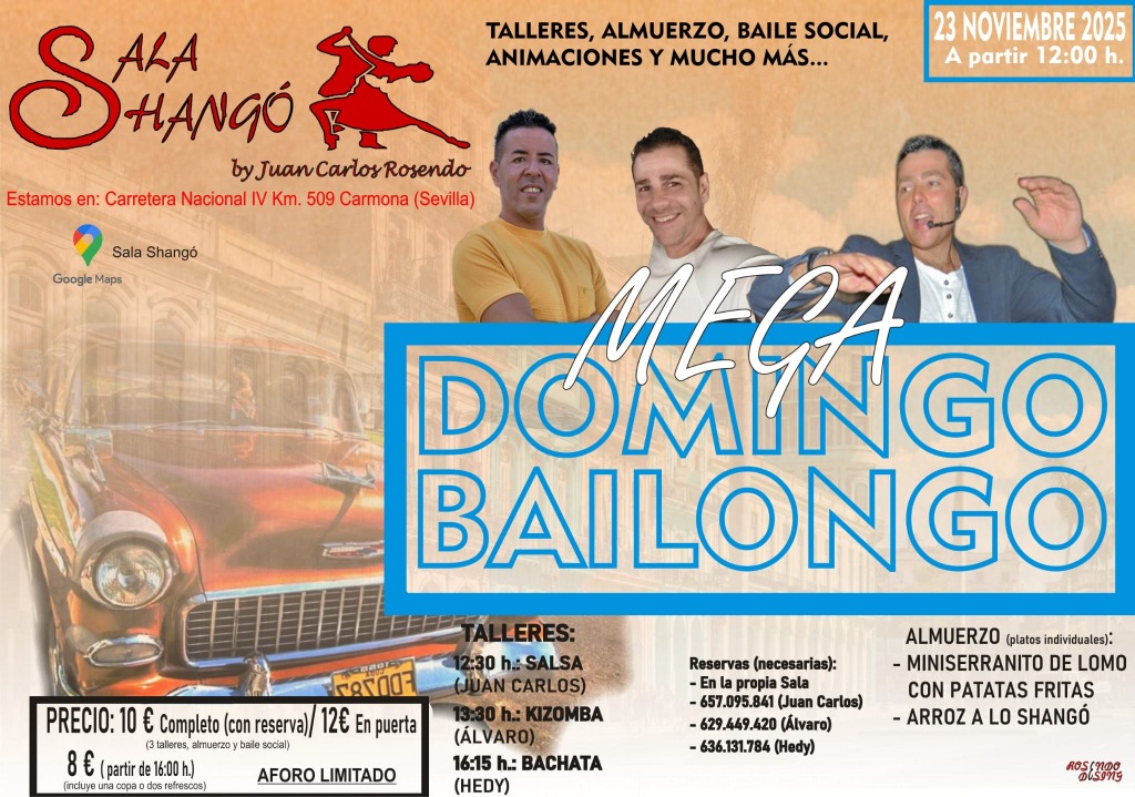 🎉 Get ready for a unique dance experience at the MEGA DOMINGO BAILONGO! 💃 In the vibrant Sala Shangó, the energy will overflow as you immerse yourself in the world of salsa, kizomba, and bachata. 🌟 This event is not just a workshop; it's a celebration of the culture and rhythm that unite us.