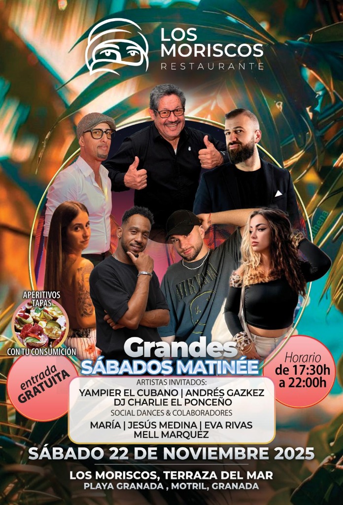 🎉 Welcome to the most vibrant party in town! Grandes Sábados Matinée at Los Moriscos is the place where the energy of Latin dance is unleashed. 💃 Enjoy a festive atmosphere where music and joy intertwine, creating a unique and unforgettable experience. 🌟