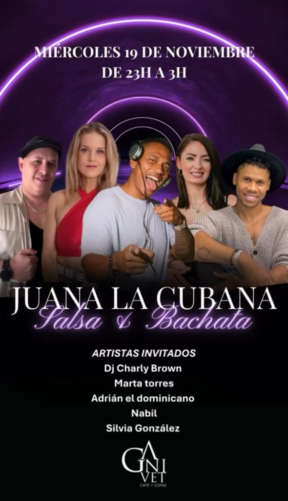 Dance the night away with our special guest artists: Dj Charly Brown, Marta Torres, AdriƔn el dominicano, Nabil, and Silvia GonzƔlez.