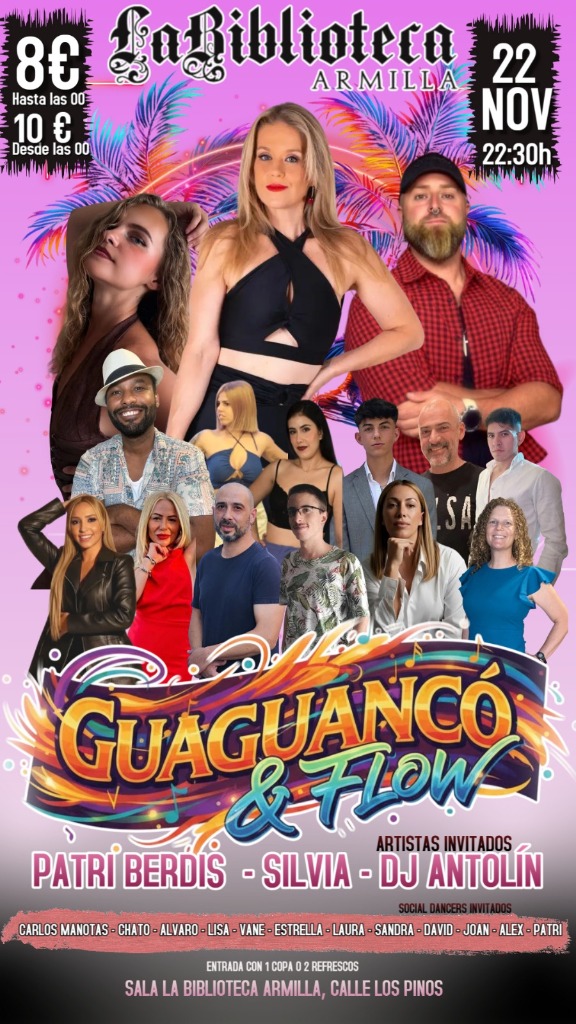 🎉 Get ready for a magical night at GUAGUANCO & FLOW! The Sala La Biblioteca will transform into an authentic salsa paradise, where rhythm and joy merge in a vibrant atmosphere. 💃 Immerse yourself in an unforgettable experience filled with energy, where every step takes you to a new level of fun and connection with the music.