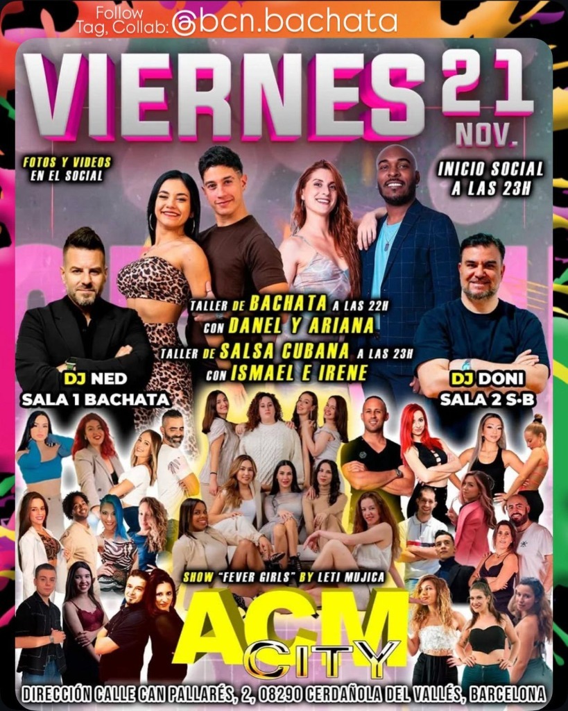 🎉 Get ready for an unforgettable night on FRIDAY NOV 21 at ACM CITY! 🌟 Immerse yourself in the vibrant world of bachata and cuban salsa as the rhythm surrounds you and the energy flows. 💃 This event is the perfect opportunity to enjoy, learn, and dance until dawn.