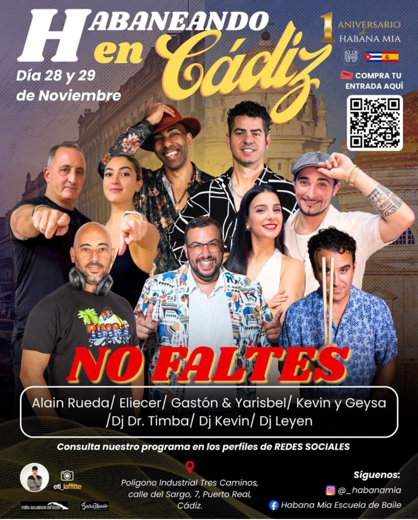 🎉 Get ready for a magical night at Habaneando en Cádiz! 💃 At the vibrant Habana Mia, you will immerse yourself in an atmosphere full of energy and passion for Latin dance. 🌟 This event promises to be a feast for the senses, where music and rhythm intertwine to create an unforgettable experience.