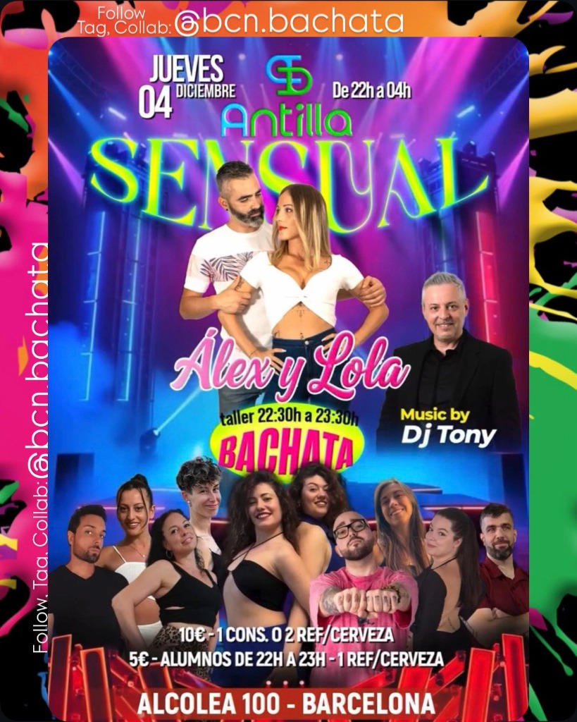 🎵 The party will feature the incredible performance of Álex and Lola, who will teach you how to move to the bachata rhythm in an exclusive workshop. Plus, the talented Dj Tony will be in charge of keeping the dance floor alive with the best tracks. You can't miss it! 🎶